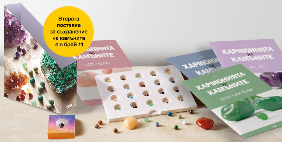 В допълнение към 100% естествените камъни с гаранционен сертификат, колекцията включва 3 посребрени колиета, за да носите камъните, 3 поставки, в които да ги съхранявате, справочник с ползите и свойствата на всички камъни и кутия за списания.